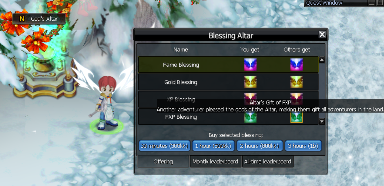 Blessings grant a server-wide buff and a stronger personal bonus for the contributor.