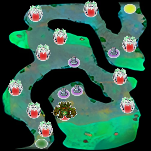 Inside the boss room, Pollutus mobilizes the force of nature to unleash devastating attacks and reveal extreme regenerative abilities.